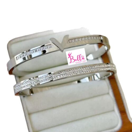 Bracelet double strass – argenté (acier inoxydable)