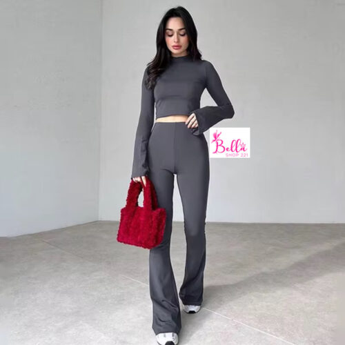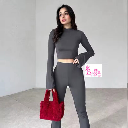 Ensemble pantalon et top avec manches évasées – gris