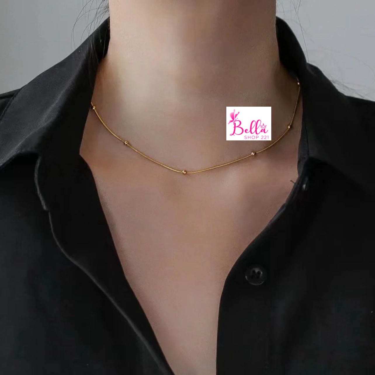 Ensemble collier & bracelet boules (acier au titane 18K)
