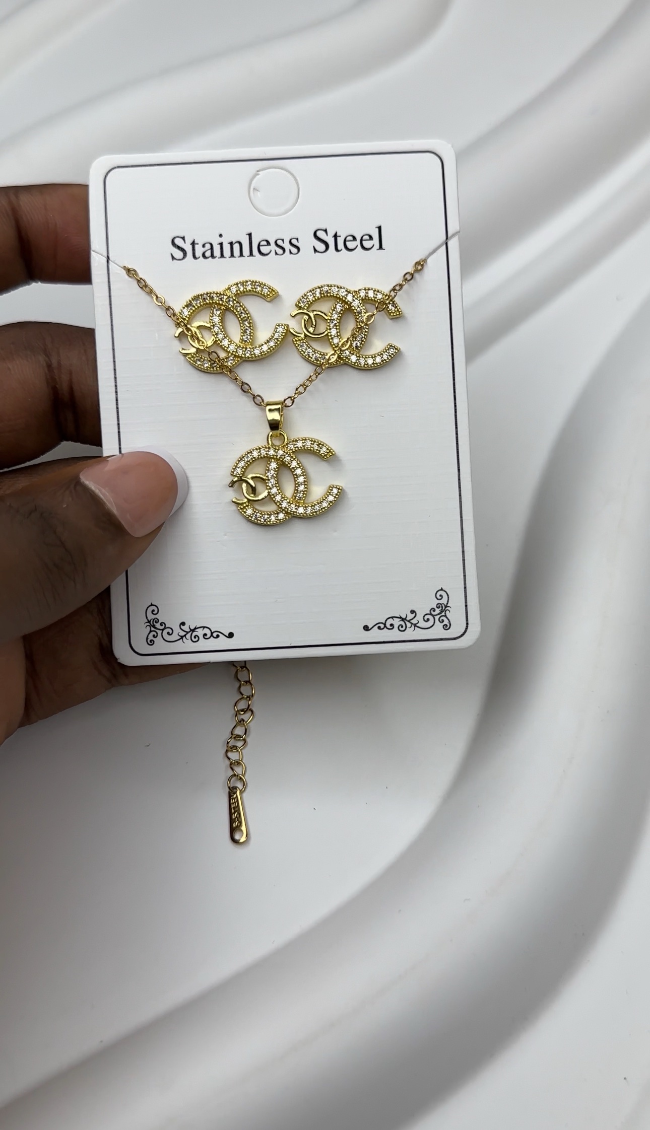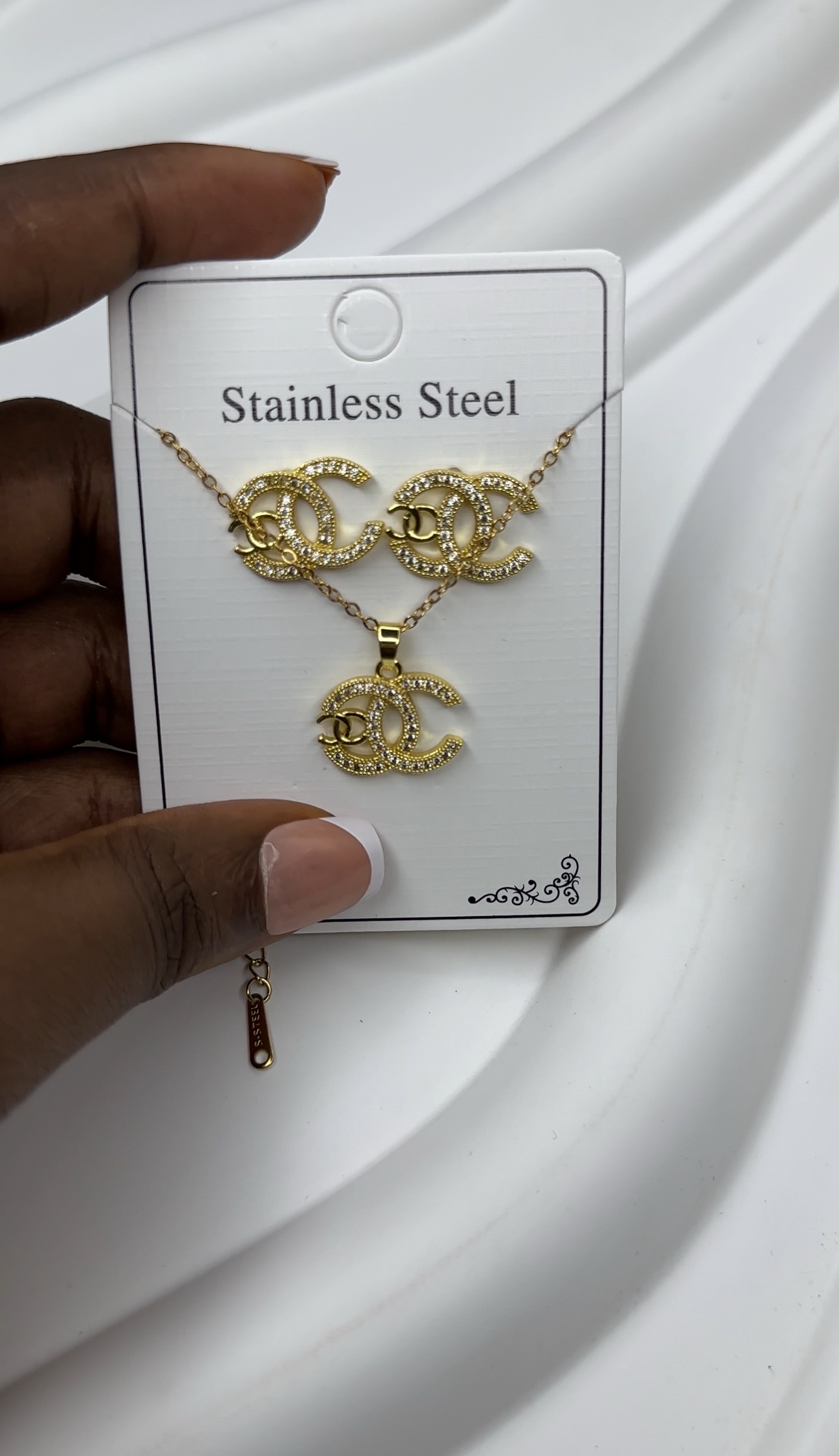 Ensemble de bijoux Chanel – collier et boucles d’oreilles doré (acier inoxydable)