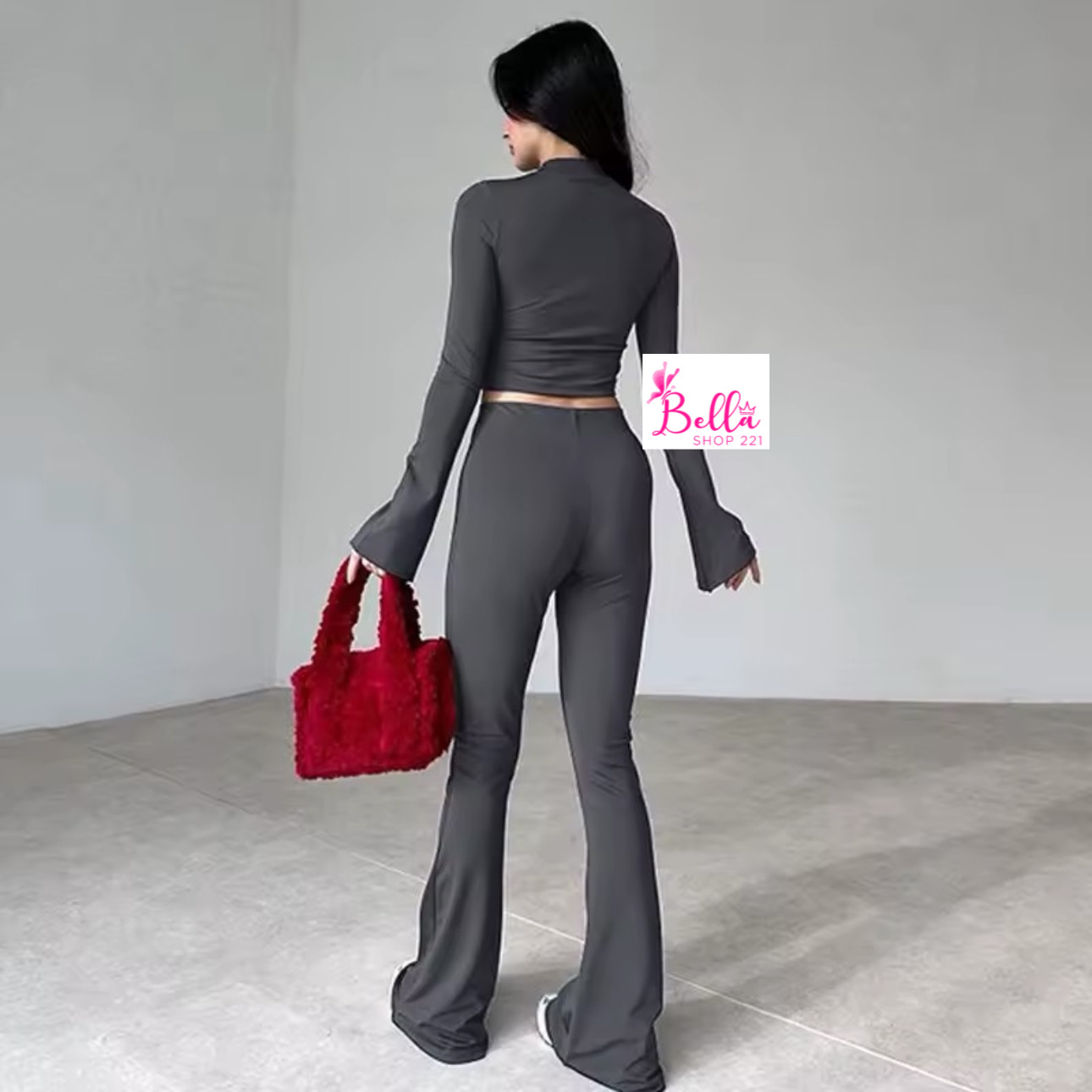 Ensemble pantalon et top avec manches évasées – gris