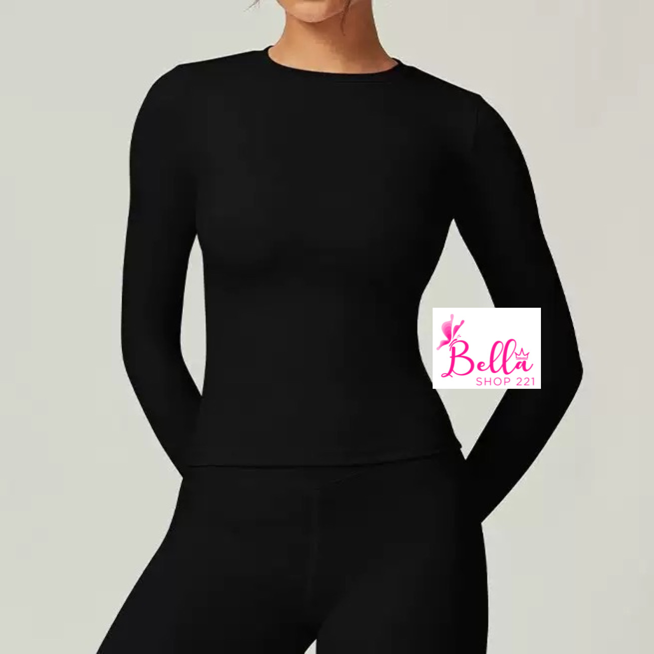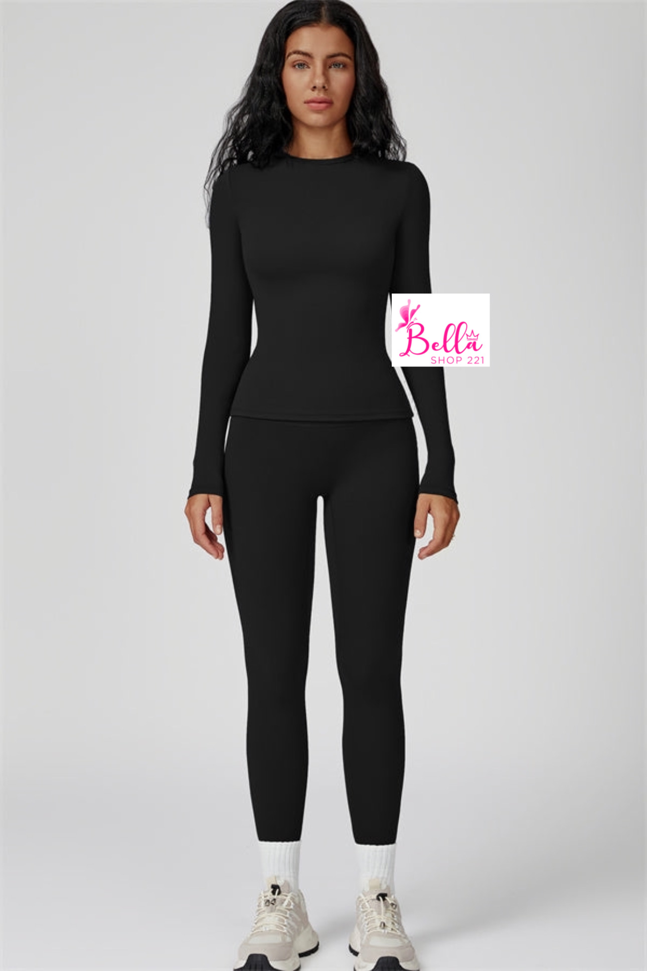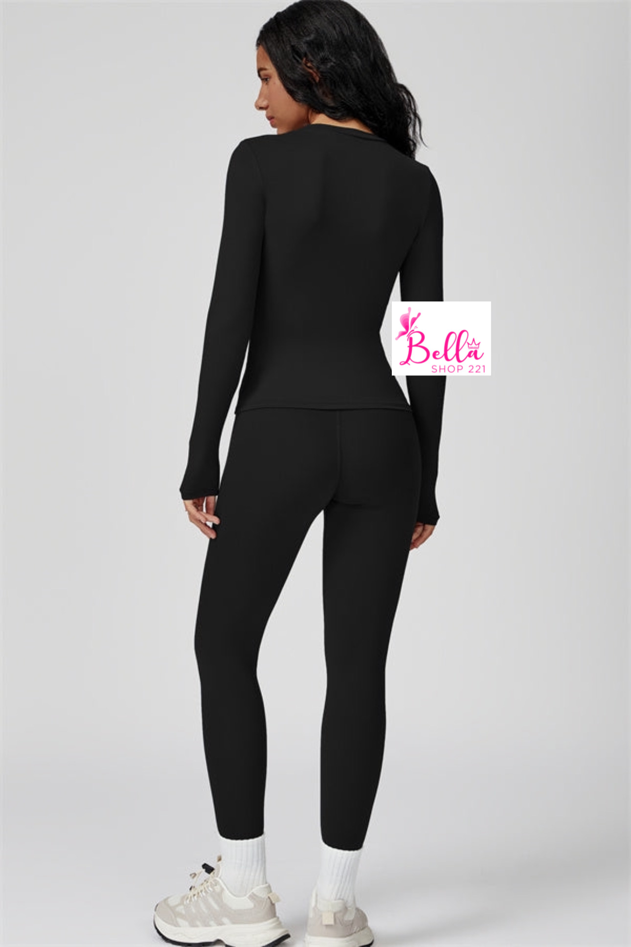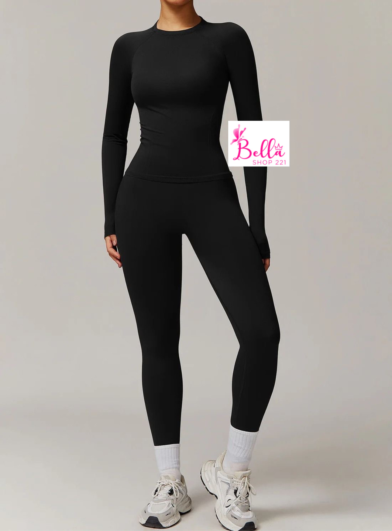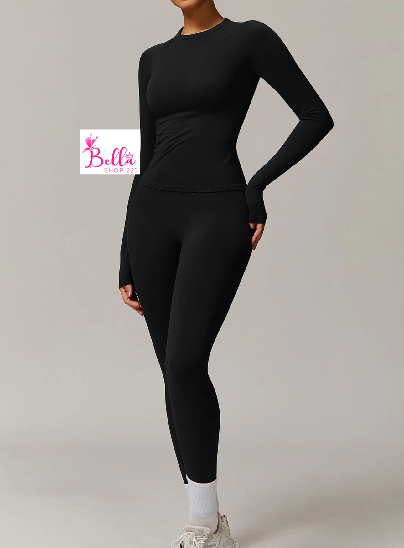 Ensemble Legging taille haute et haut longues manches seamless – noir