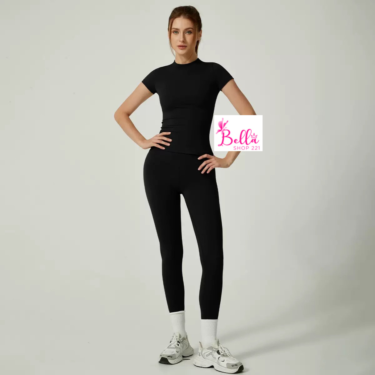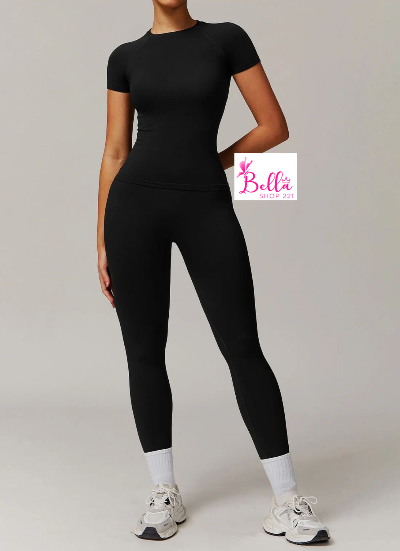 Ensemble Legging taille haute et T-Shirt seamless – noir