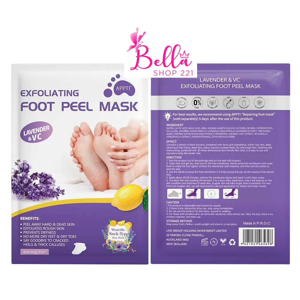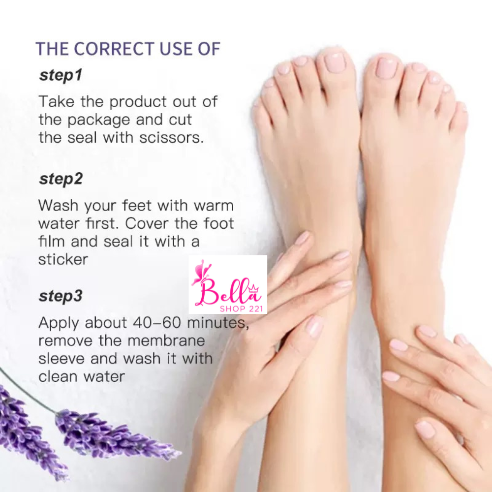 Ce masque spécialement conçu pour les pieds est idéal pour retirer les peaux mortes et donner ainsi un effet lisse à la plante des pieds .