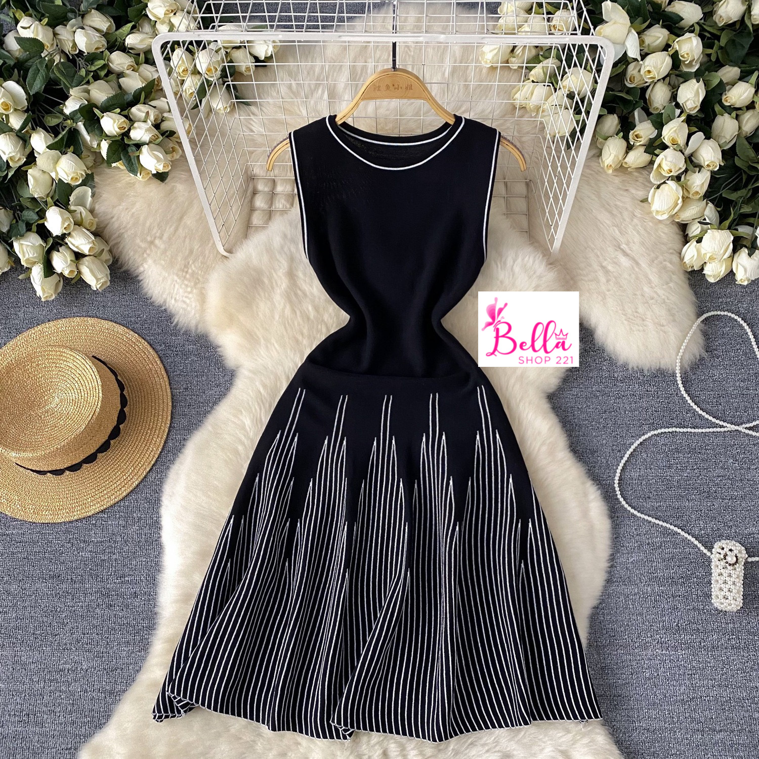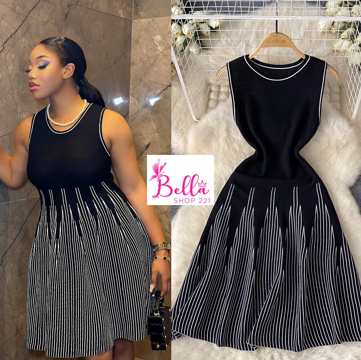 Mini Robe sans manches – noir blanc