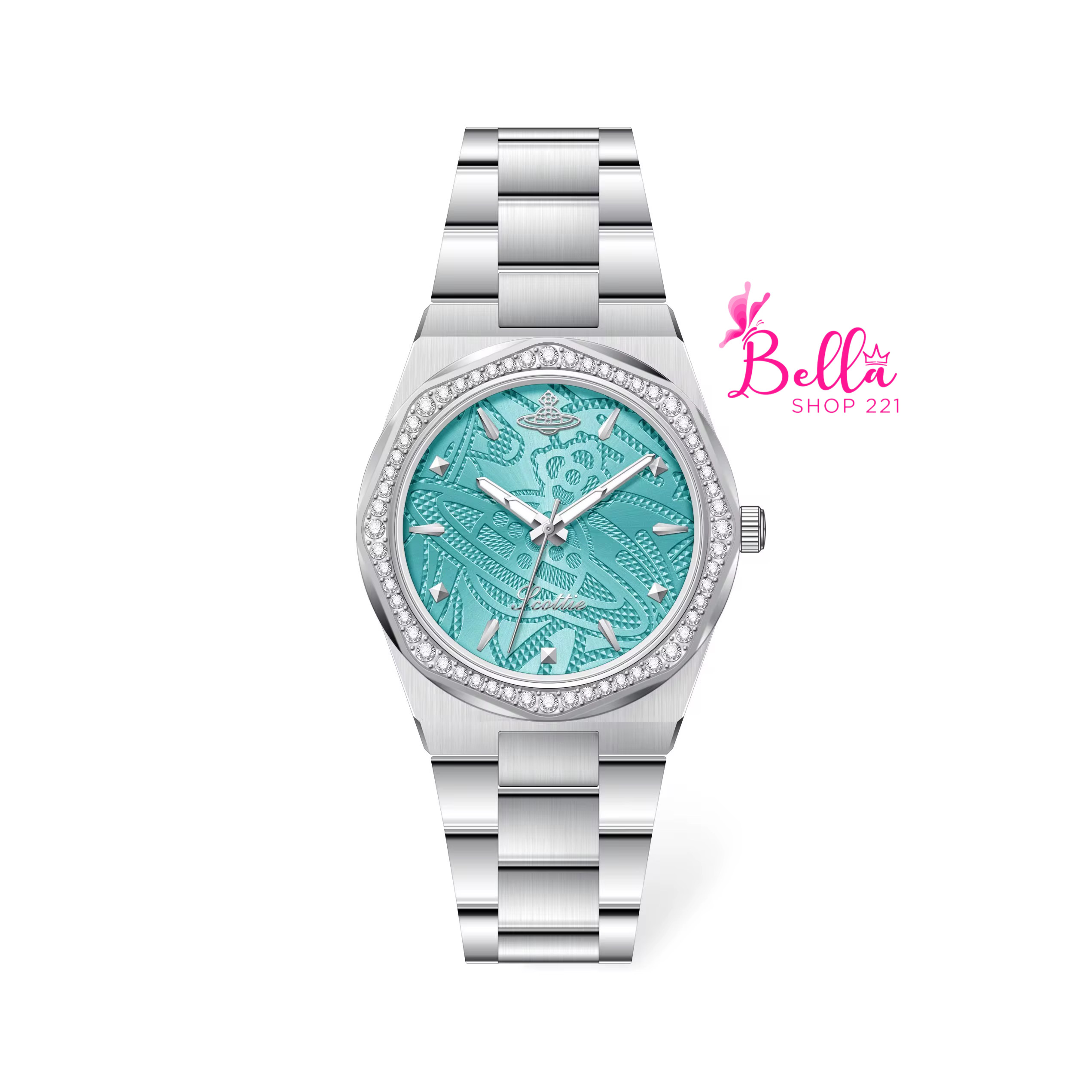 Montre Scottie – bleu turquoise et bande argentée (+ boîte + sac + ajusteur de bande)