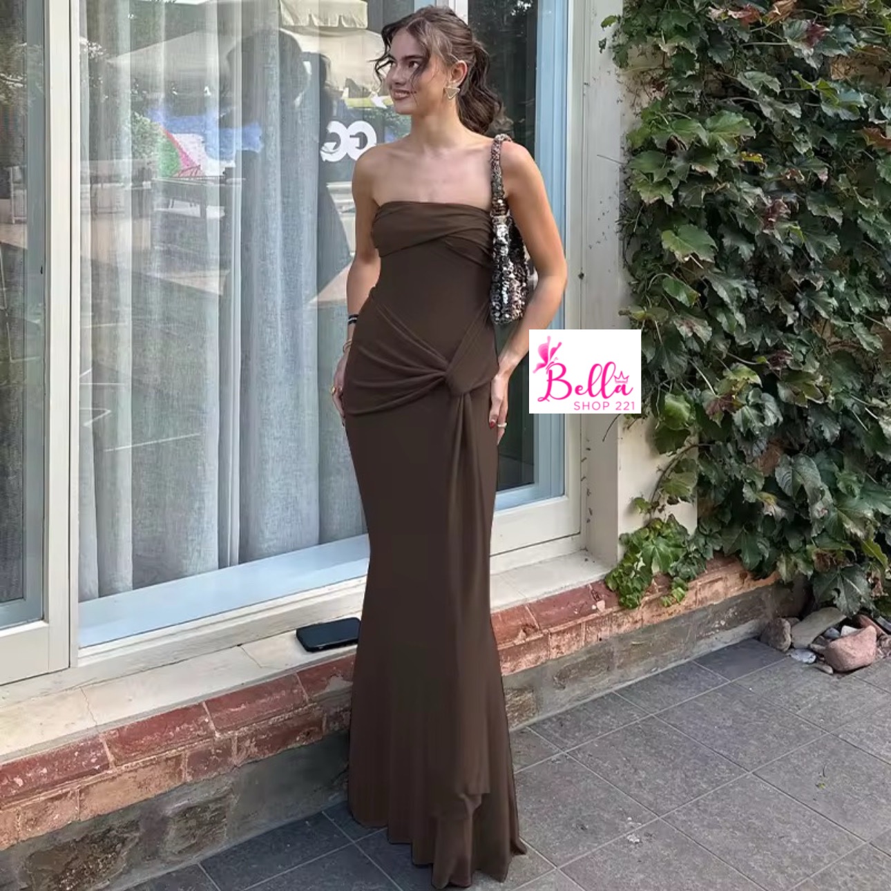 Robe avec attache – marron