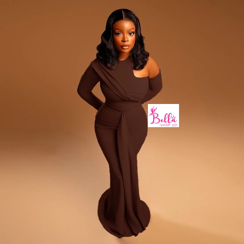 Robe moulante longues manches – marron